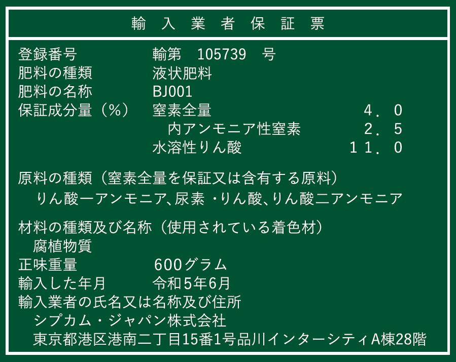 - 本製品は、窒素及びリンを含む肥料です(肥料登録番号:輸第105739号)