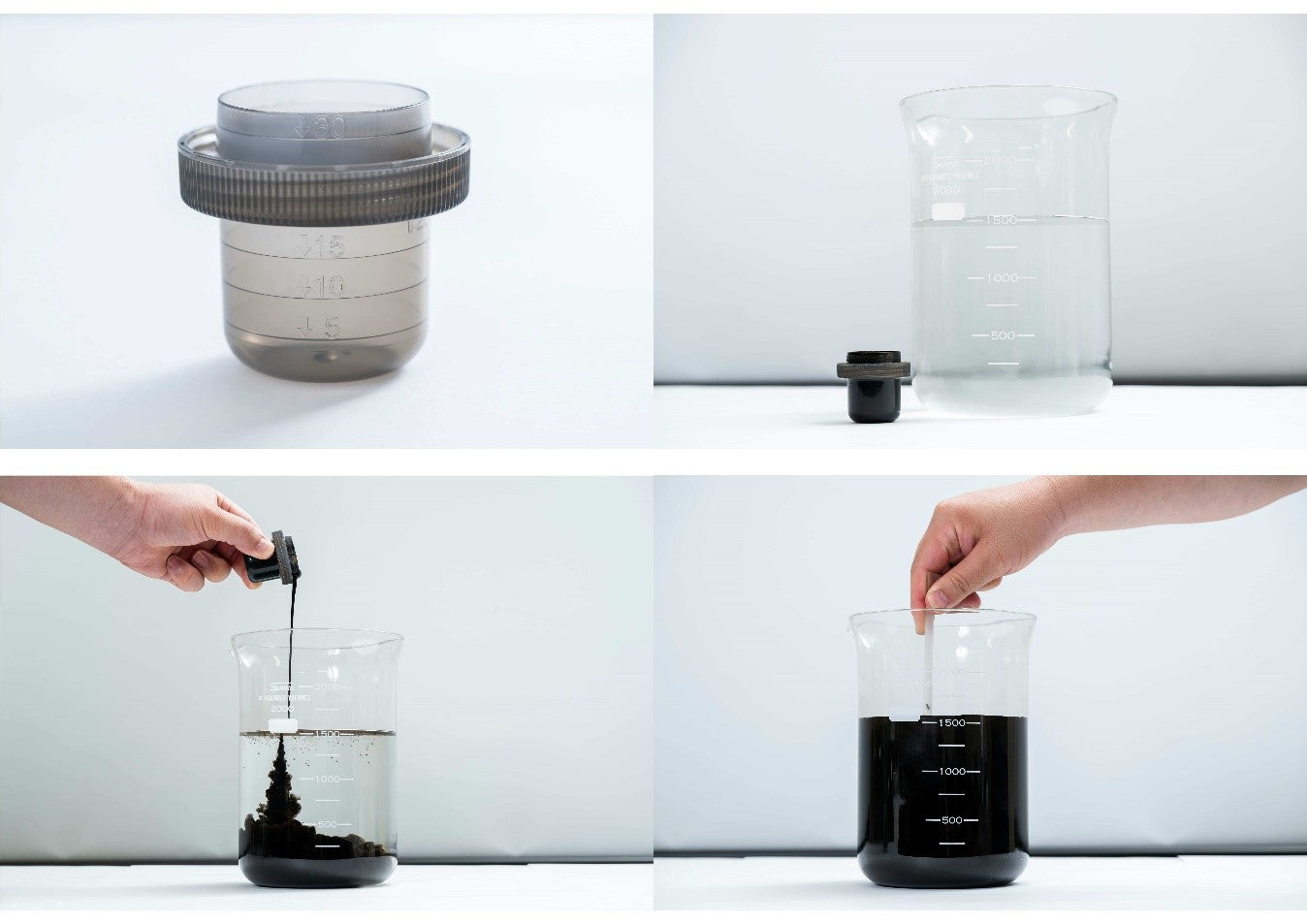 - 原液はとても粘度の高い液体ですが、沈殿したり、濃度に偏りがおきないよう、製剤処方を工夫しています。