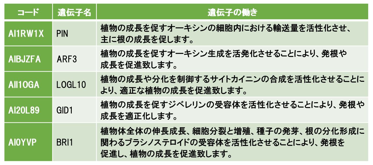 - エクスプルートは作物の生育に関与する遺伝子の発現量を増加させることが確認されています。